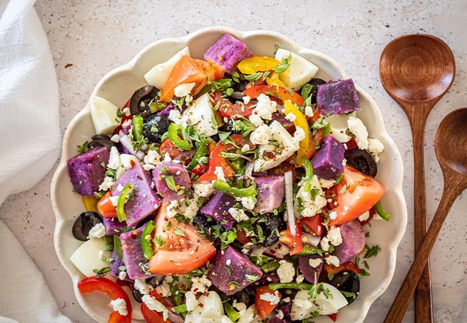 It’s fun to use these blue potatoes, but if your market doesn’t carry them or if you prefer other potatoes, you can always use small red or white potatoes.